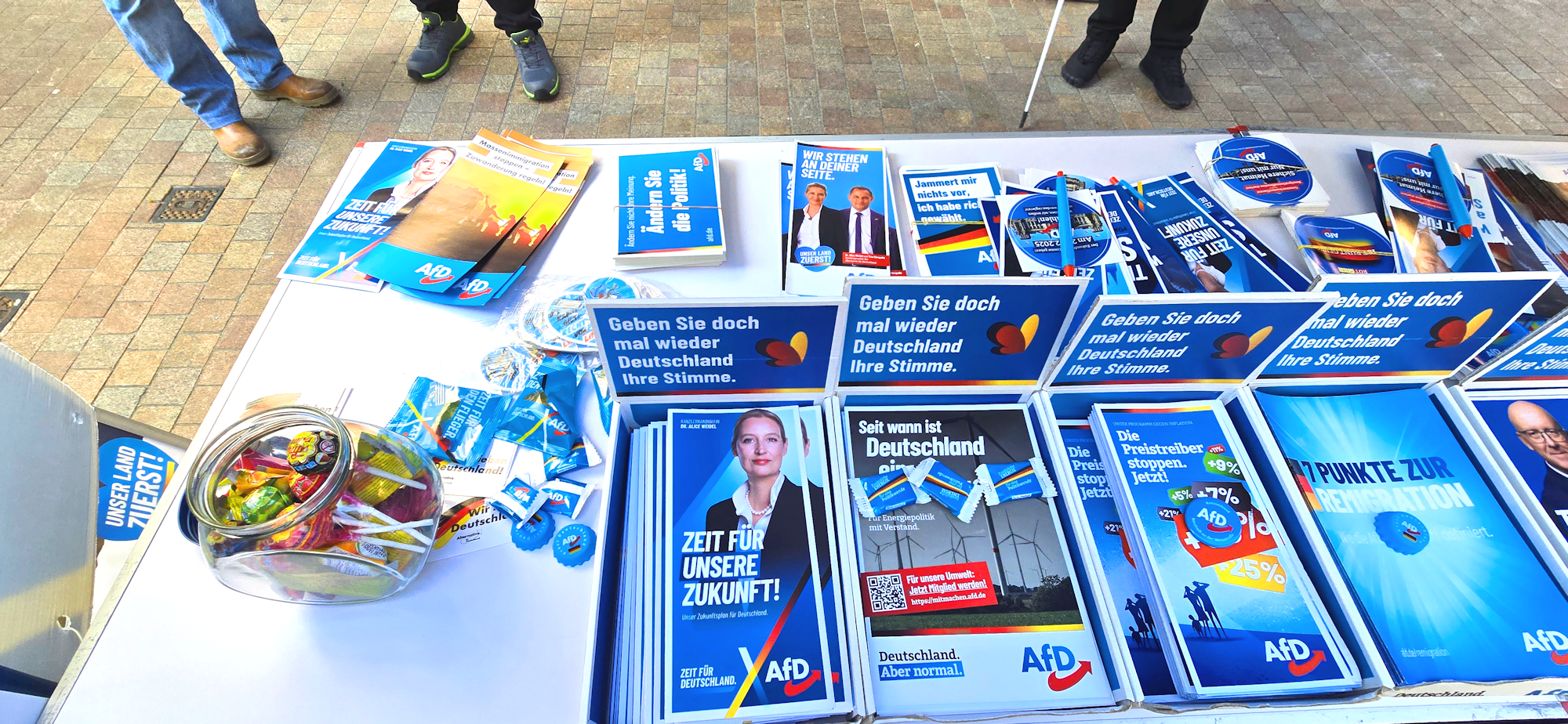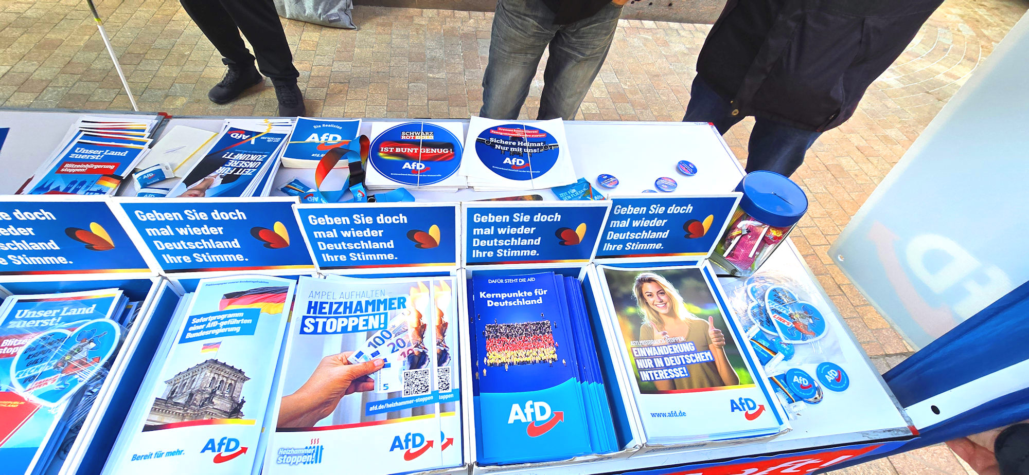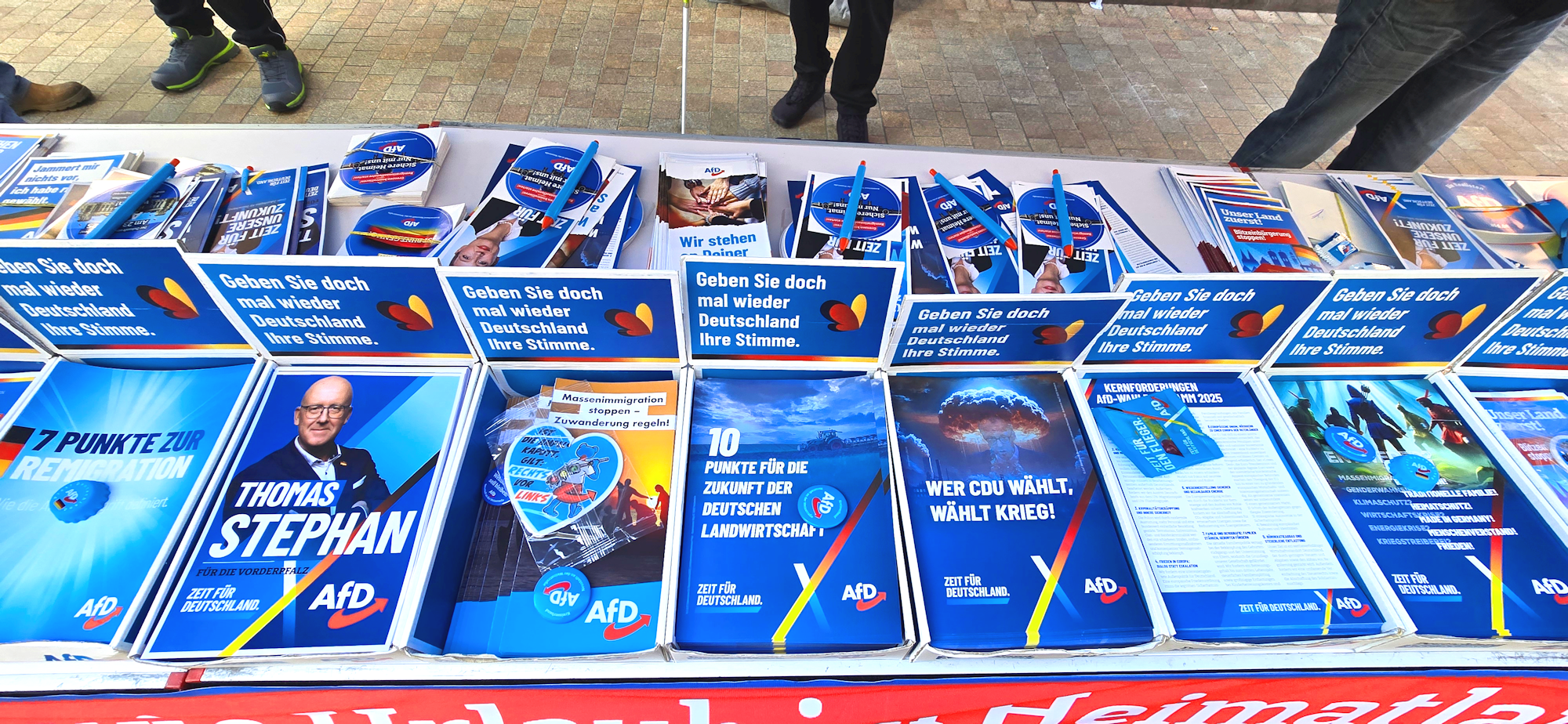 Trotz der Demonstration haben wir unseren Infostand wie gewohnt bis 14 Uhr fortgeführt. Wir lassen uns nicht einschüchtern und stehen weiter für unsere Überzeugungen ein – im Sinne einer demokratischen und zukunftsorientierten Politik für Deutschland.