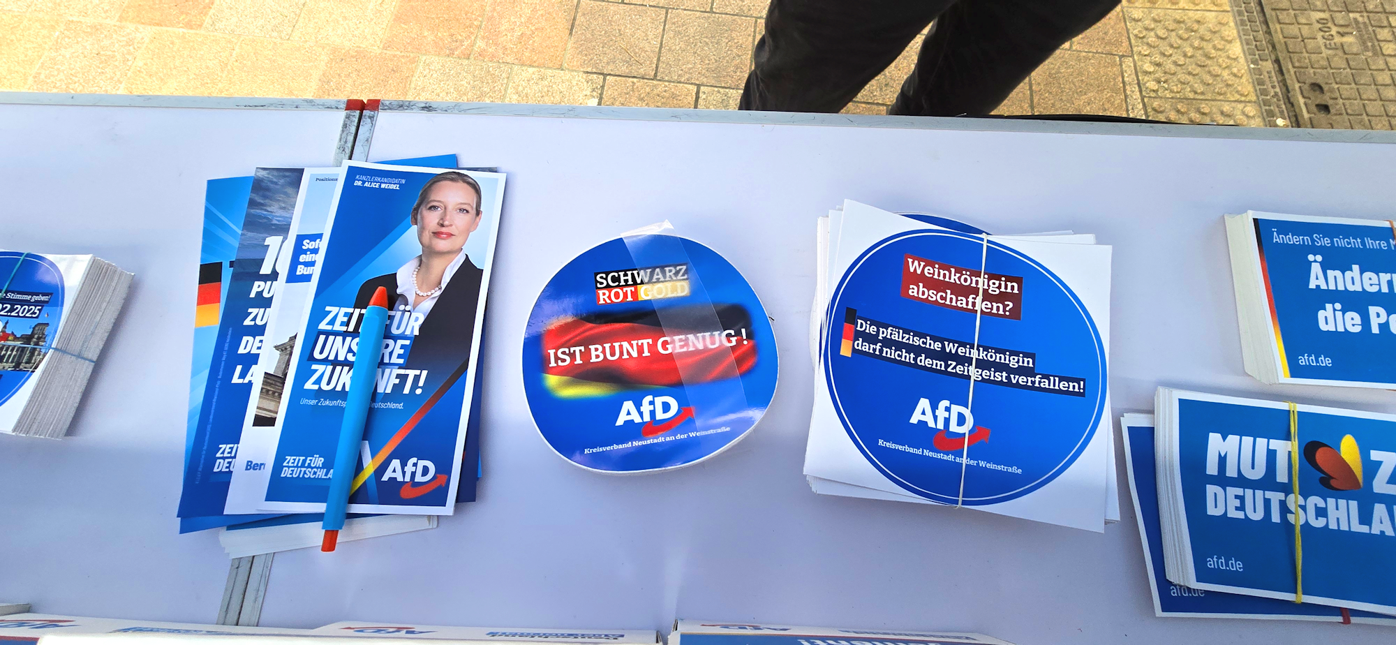 Ein besonderer Dank gilt zudem den engagierten Mitgliedern des AfD Kreisverband Neustadt an der Weinstraße, die diesen Infostand durch ihren Einsatz möglich gemacht haben, sowie unserem Direktkandidaten AfD Thomas Stephan, der mit seiner Präsenz die Veranstaltung bereicherte.
