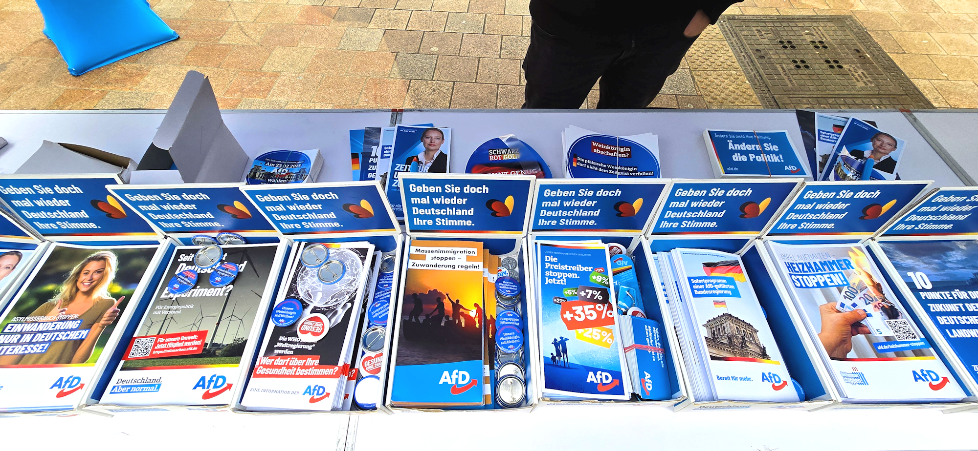 Besonders erfreulich war der Austausch mit einigen Jugendlichen mit Migrationshintergrund, die auf unsere Inhalte aufmerksam wurden und sich aktiv mit unseren Ideen auseinandersetzten. Sie sprachen uns unter anderem auf den Flyer unserer Parteifreunde aus Karlsruhe an (One-Way-Ticket), der das Thema Rückführung behandelt. Nach einer offenen und sachlichen Diskussion konnten wir Missverständnisse klären, insbesondere darüber, welche Gruppen tatsächlich von unseren Remigrationsplänen betroffen wären. Wir nutzten die Gelegenheit, um gezielt über unsere Vorschläge zur Migrationspolitik zu informieren und ihnen passenden Informationsmaterial an die Hand zu geben.