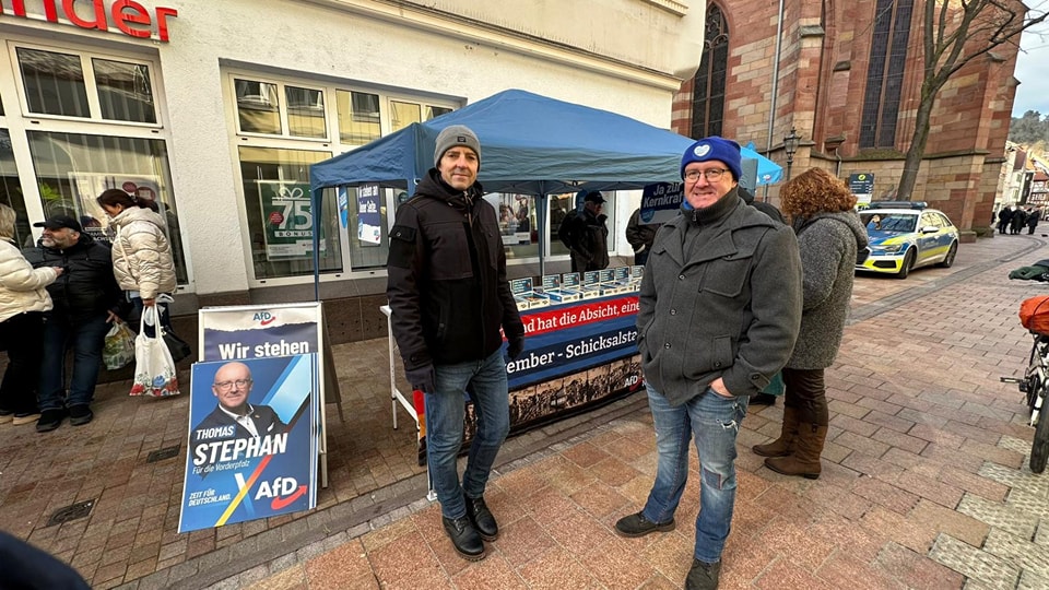 Am 11. Januar 2025 startete die AfD ihren ersten Infostand zur Bundestagswahl in Neustadt – ein Auftakt, der sowohl von patriotischer Entschlossenheit als auch von bürgernaher Kommunikation geprägt war. Trotz der Provokationen durch politische Gegner wie die Grünen, die bereits vorzeitig Plakate aufhängten, und die SPD, die direkt neben dem AfD-Stand eine „FCK AfD“-Fahne präsentierte, zeigte der AfD Kreisverband Neustadt an der Weinstraße Stärke und Gelassenheit.